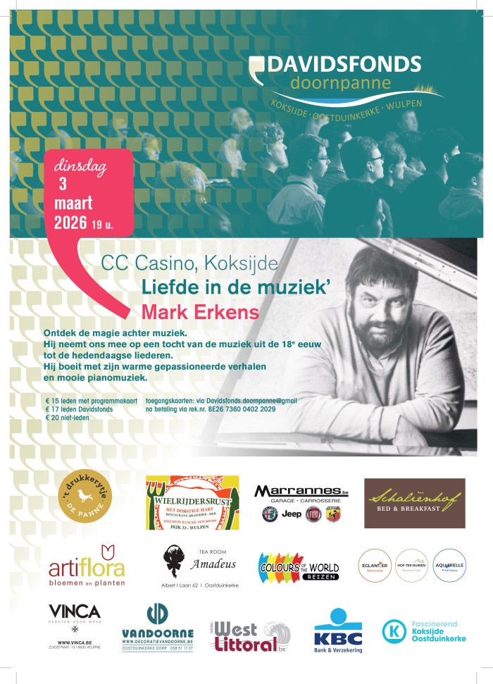 Mark Erkens neemt ons mee op een toch van de muziek uit de 18de eeuw tot de hedendaagse liederen. Hij boeit met zijn warme gepassioneerde verhalen en mooie pianomuziek.